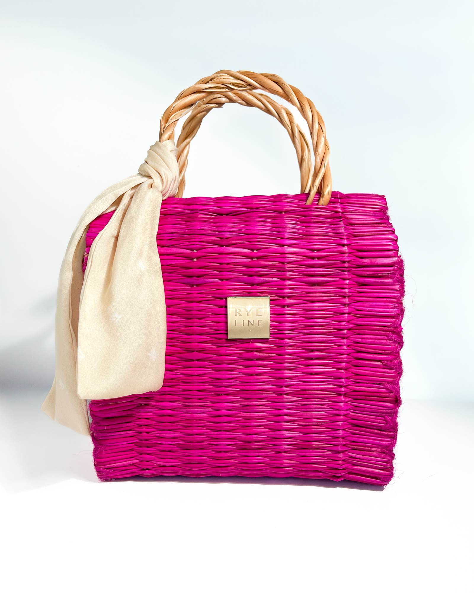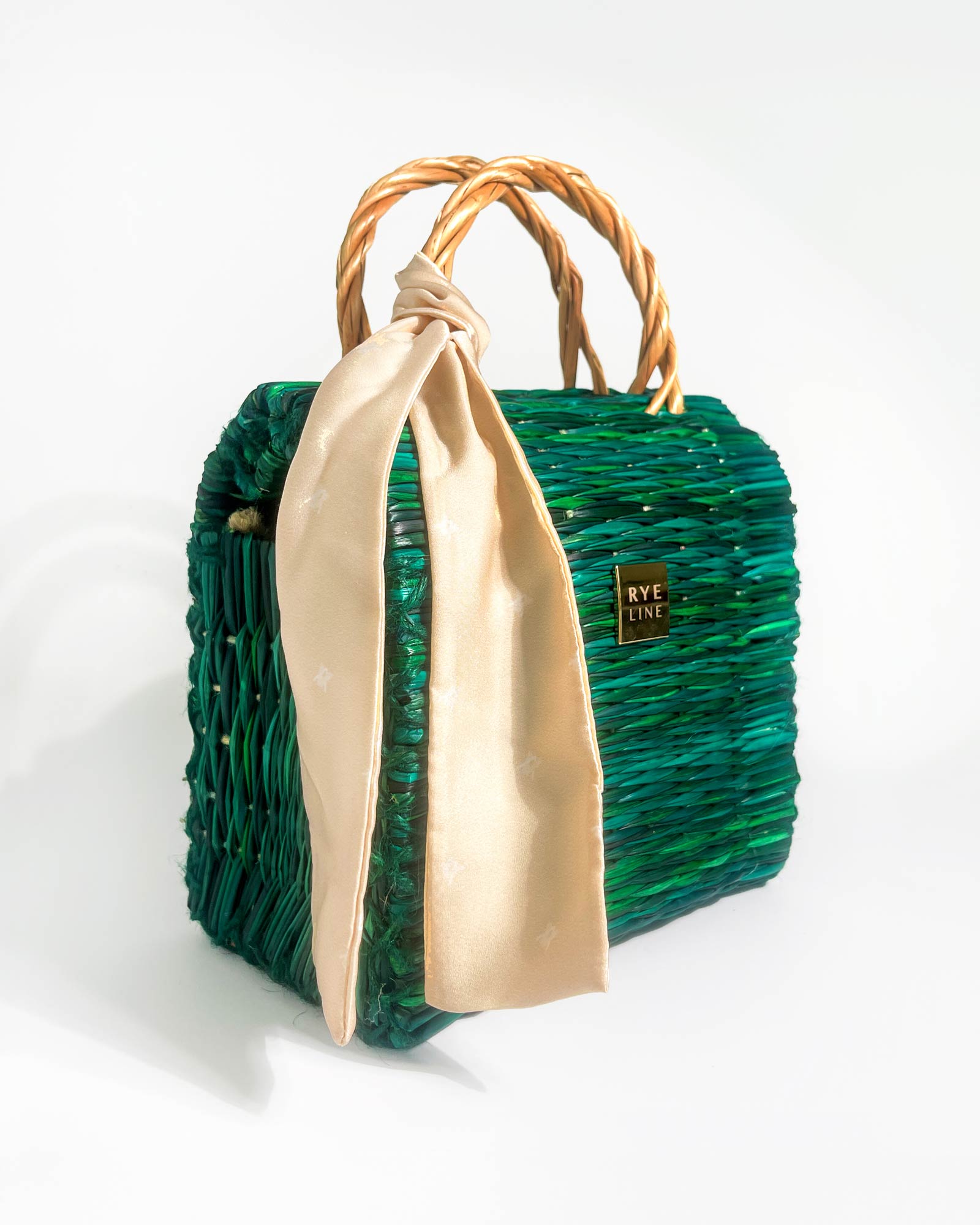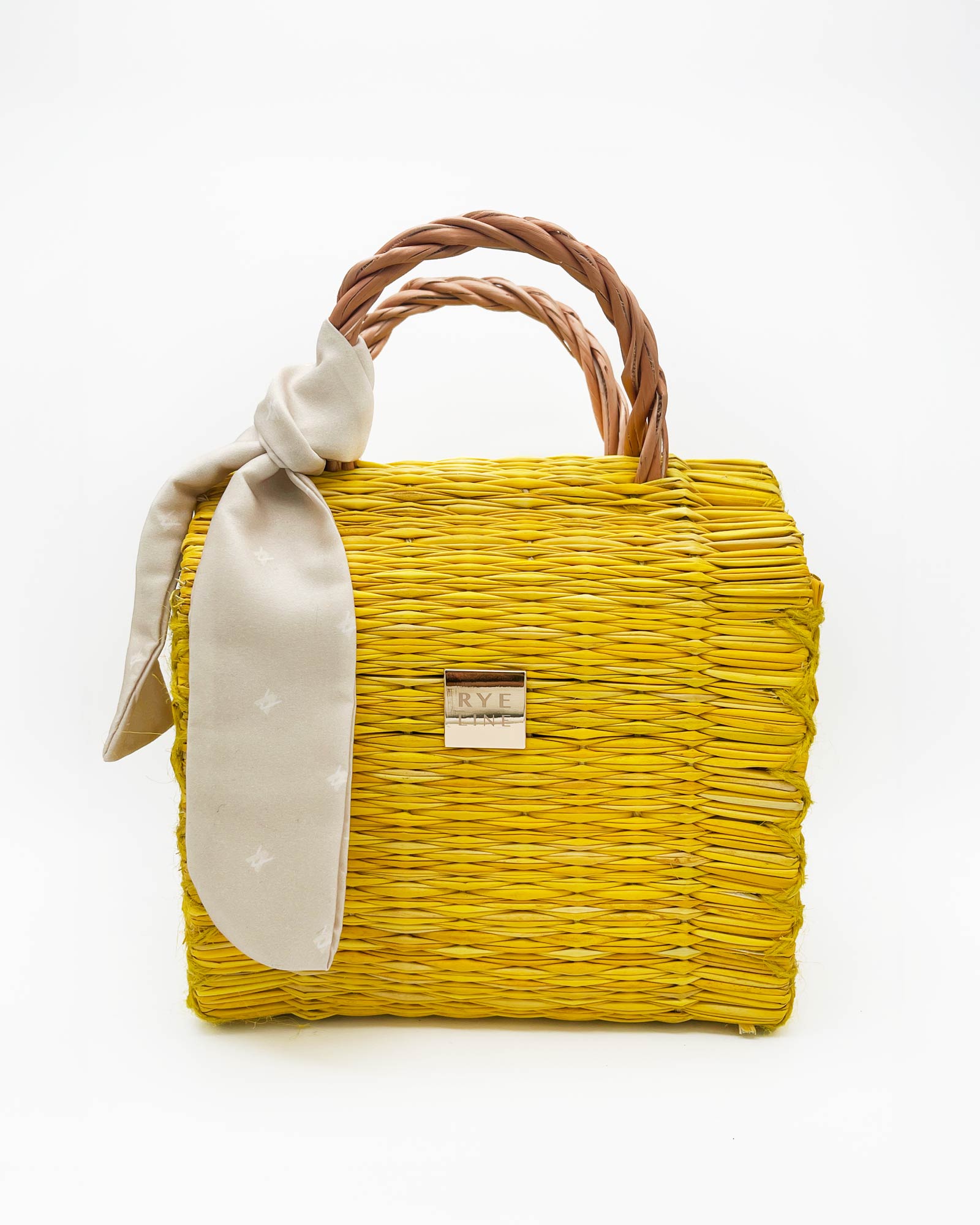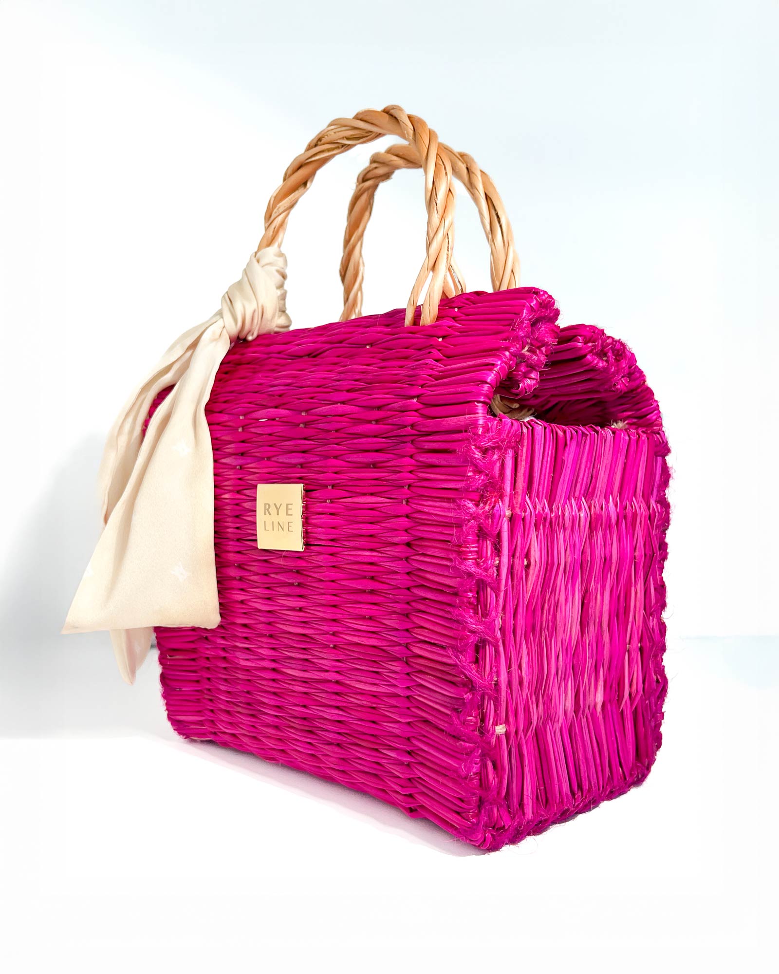 Cesta de junco com lenço Rye e bolsa interior removível e lavável.